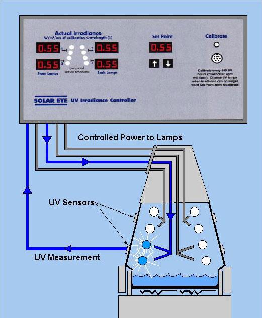 由上圖可知,QUV通過主板控制紫外燈燈管的光照強度,燈管發(fā)光后,由機器內(nèi)部的光照強度傳感器探頭感應(yīng)到光強,再反饋回主板進行分析比較,然后再進行調(diào)節(jié),直到實際的照度值與設(shè)定值一致。當照度設(shè)定好后,整個調(diào)節(jié)過程由機器自動進行。