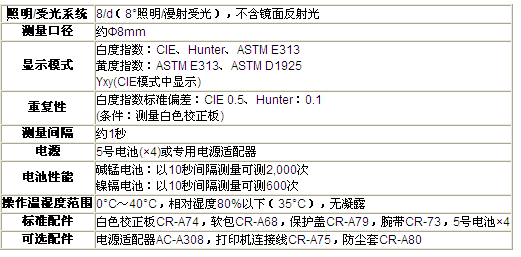 色度計(jì)對(duì)白/黃度進(jìn)行簡(jiǎn)便、快捷控制,白色的微小變化非常明顯但難于客觀定量。小型白度計(jì)CR-14能夠讓您方便、精確地控制白色調(diào)、近白或微黃產(chǎn)品,如食品和原材料等。CR-14使用國(guó)際標(biāo)準(zhǔn)及眾所周知的CIE、ASTM和亨特爾白/黃度指標(biāo)進(jìn)行測(cè)量。