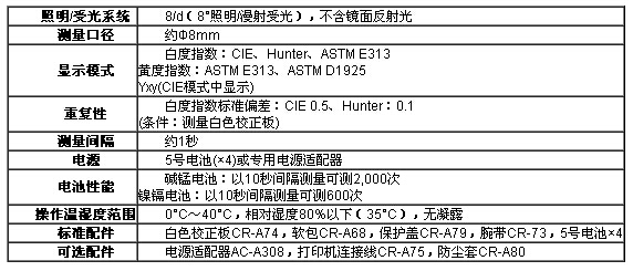 白色的微小變化非常明顯但難于客觀定量。CR-14小型色度儀能夠讓您方便、精確地控制白色調(diào)、近白或微黃產(chǎn)品,如食品和原材料等。CR-14小型色度儀使用國(guó)際標(biāo)準(zhǔn)及眾所周知的CIE、ASTM和亨特爾白/黃度指標(biāo)進(jìn)行測(cè)量。