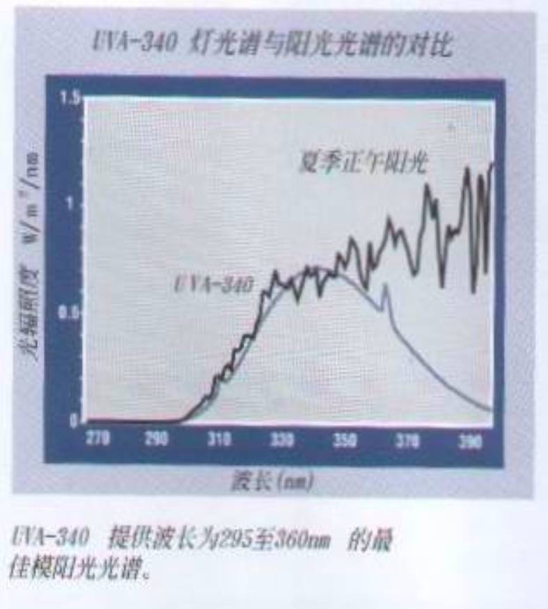 1、UVA-340模擬陽光紫外線的最佳選擇波長范圍295-360納米的光譜